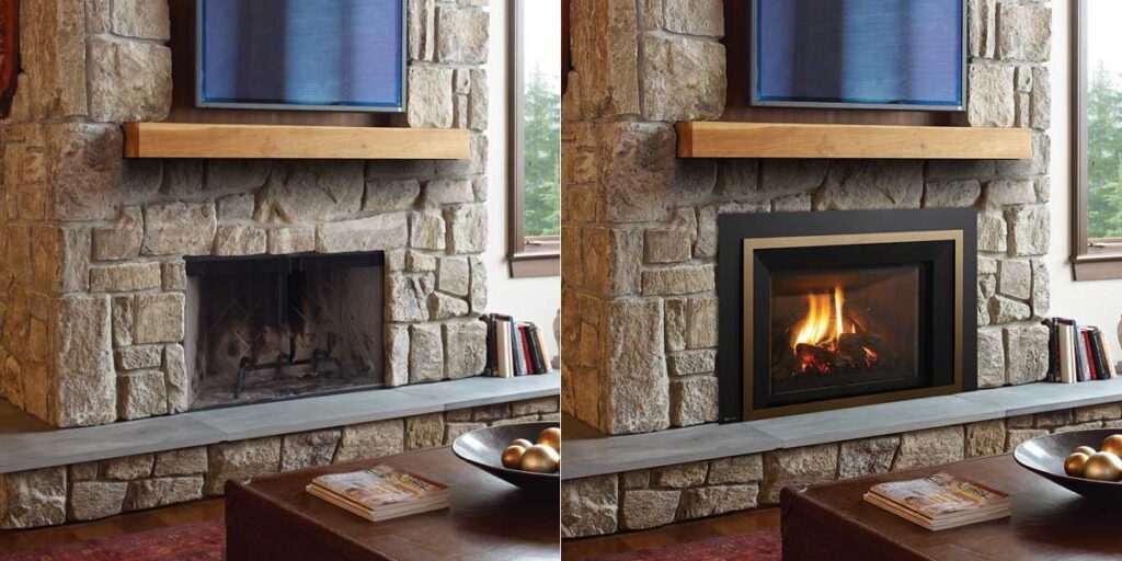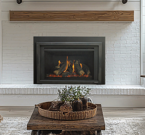 A Direct-Vent Fireplace Insert turns your existing wood-burning fireplace into an efficient gas-fired heat source. Direct-Vent Fireplace Inserts are classified as zone heating appliances. Zone heating is inherently more efficient than your existing wood-burning fireplace or your central furnace. Our Innsbrook large Direct-Vent insert inncludes liner and hand-painted ceramic fiber logs, nestled atop the variable flame height burner, to create an exceptionally attractive traditional fireplace. With an input of 28,500 Btus, the Direct-Vent insert’s unique Slope Glaze Burner produces natural flickering flames that dance and delight – warming your heart as it warms your soles. DVC28IN31N